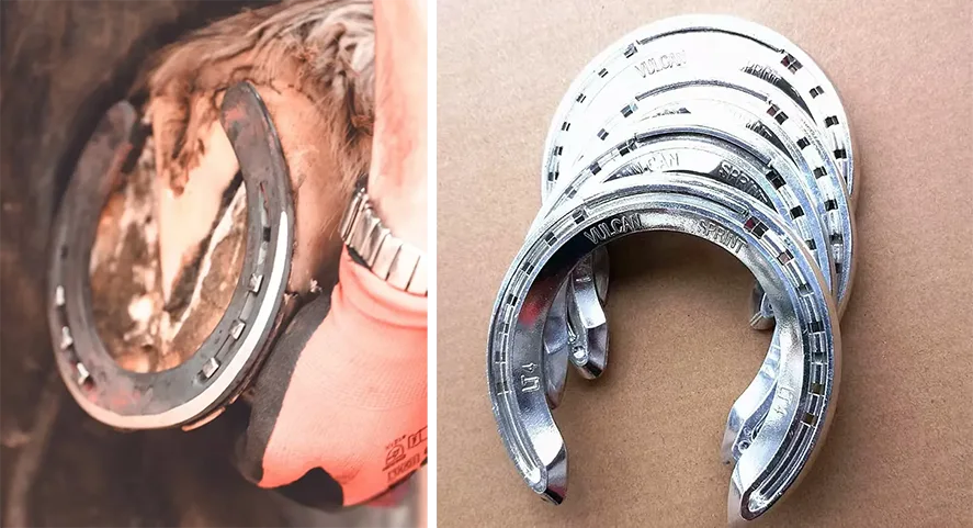 Horseshoes aluminium entheng luwih awet tinimbang komposit. Dadi yen jaran sampeyan duwe hooves sing tuwuh beda saka carane ngirim, logam bakal bantuan kanggo njaga wangun.Tapal kuda aluminium nawakake sawetara kaluwihan utama: Suda otot lemes: Kurang kaku ing perangan awak jaran. Locomotion sing luwih apik: langkah sing luwih lancar lan pemulihan sing luwih apik.